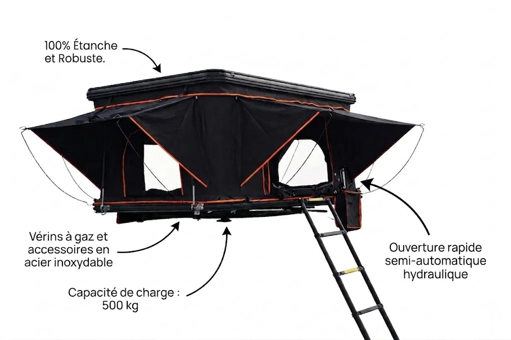 Cette tente de toit nouvelle génération transforme chaque escapade en véritable expérience haut de gamme, que vous soyez en couple à la recherche de liberté ou en famille en quête de souvenirs inoubliables.